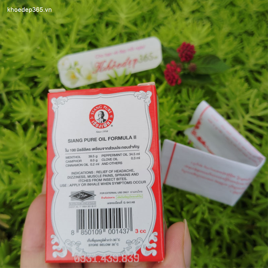 Công dụng Dầu Gió Siang Pure Oil Nước Trắng Thái Lan 3cc