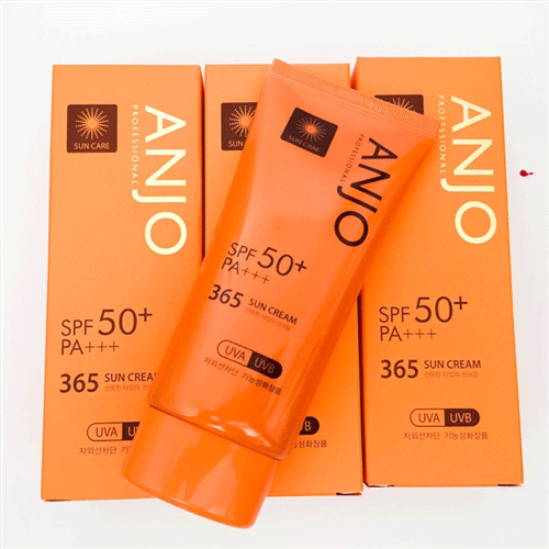 Kem Chống Nắng ANJO 365 SPF50PA+++ Hàn quốc có tác dụng chống nắng, bảo vệ da khỏi tia cực tím, tia tử ngoại. Bên cạnh đó kem chứa chiết xuất hoa sen có tác dụng chăm sóc da, làm dịu da và bảo vệ da suốt cả ngày dài.