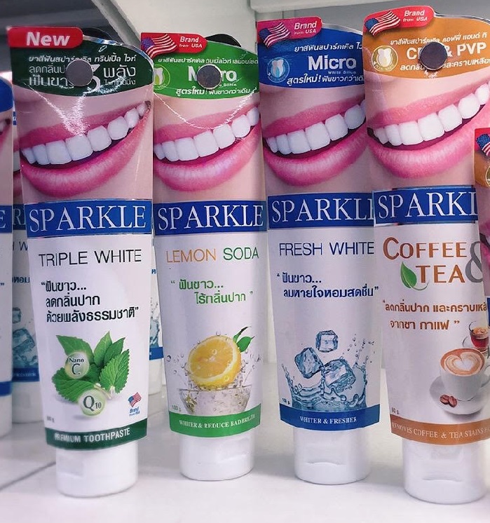 - Kem đánh răng SPARKLE chuyên về làm trắng, đánh bật vết ố vàng chỉ trong thời gian ngắn.